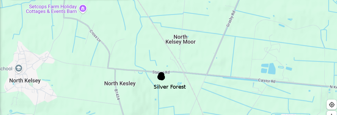 The entrance to the track to Silver Forest is on the South side (on the left if you are coming from Caistor) off Station Road about equidistant from the junction with Cross lane (the B1434) and the railway line.